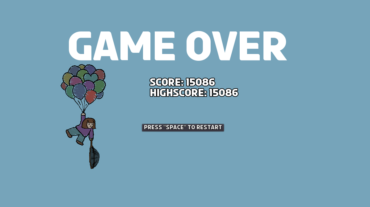 - hold "space" to prepare your net to swing, when it ready, release "space" and swing your net. If you release your net before it ready, it will go initial position without catching balloons.